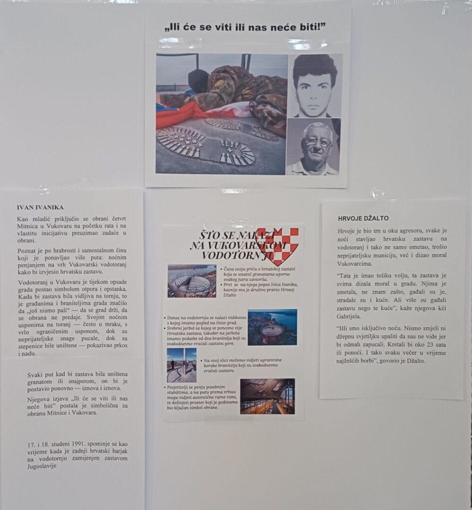 Učenici naše Škole, u sklopu slobodne aktivnosti Mladi povjesničari, istražili su djelovanje hrvatskih branitelja Ivana Ivanike i Hrvoja Džalte. Ovi su vukovarski heroji, svakodnevno riskirajući svoje živote, podizali hrvatski barjak na vukovarski vodotoranj i Vukovarcima davali nadu i spoznaju da Vukovar još nije pao.
