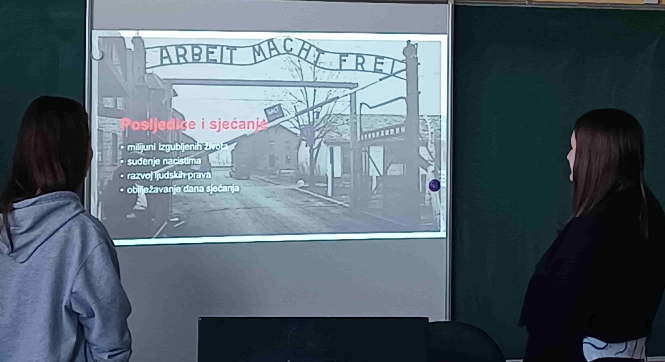 Prilikom obilježavanja dana sjećanja na žrtve holokausta u Drugom svjetskom ratu, 27. siječnja, učenici 1.g, 2.e razreda naše Škole izradili su i izložili samostalne radove u sklopu nastave povijesti i slobodne aktivnosti Mladi povjesničari. Učenici su na temelju prezentacija iznijeli svoja razmišljanja i stavove o stradanjima u logorima tijekom Drugog svjetskog rata.