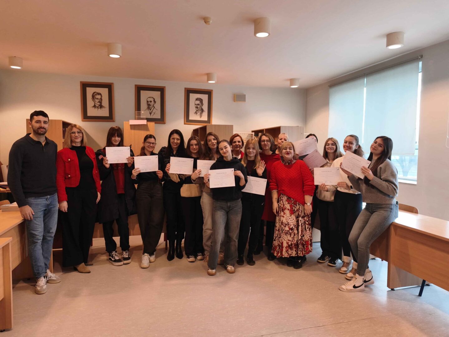U petak 6. veljače u školskoj knjižnici održana je podjela certifikata učenicima sudionicima 1. mobilnosti u okviru Erasmus projekta Poslovne vještine za budućnost. Certifikati služe kao potvrda priznanja ostvarenosti dijela ishoda propisanih kurikulima pojedinih predmeta te kao priznanje sudjelovanja učenika u aktivnostima predviđenima tom mobilnošću.