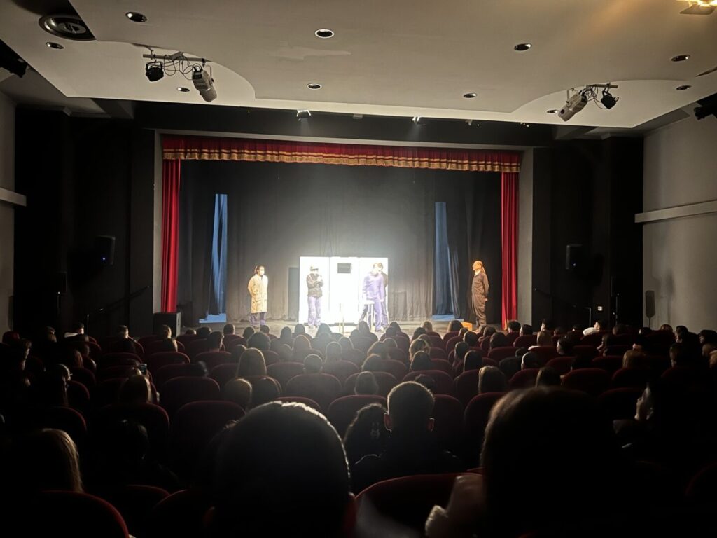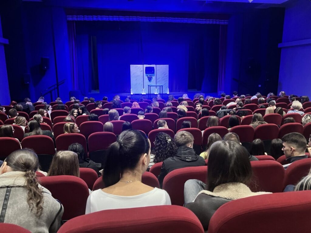 Kazališna grupa American Drama Group Europe, u suradnji s TNT Theatre Britain, po prvi put izvodila je svoju predstavu u Gradskom kazalištu Joze Ivakića u Vinkovcima, izvedbu engleske kazališne adaptacije romana “1984” Georgea Orwella. Učenici 3. i 4. razreda naše škole su u sklopu nastave engleskoga jezika nazočili predstavi.
